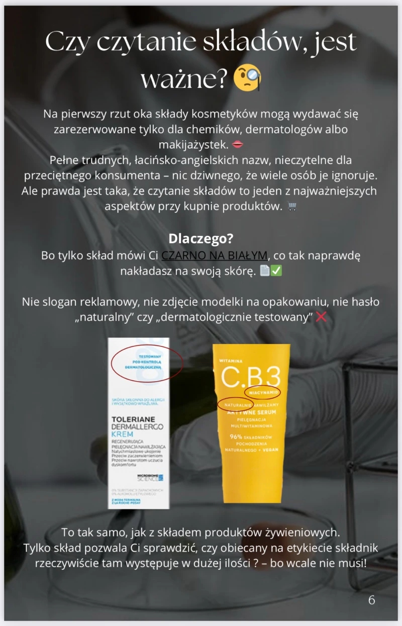 Dzięki niemu nauczysz się samodzielnie analizować etykiety i świadomie wybierać produkty, które odpowiadają potrzebom Twojej skóry.